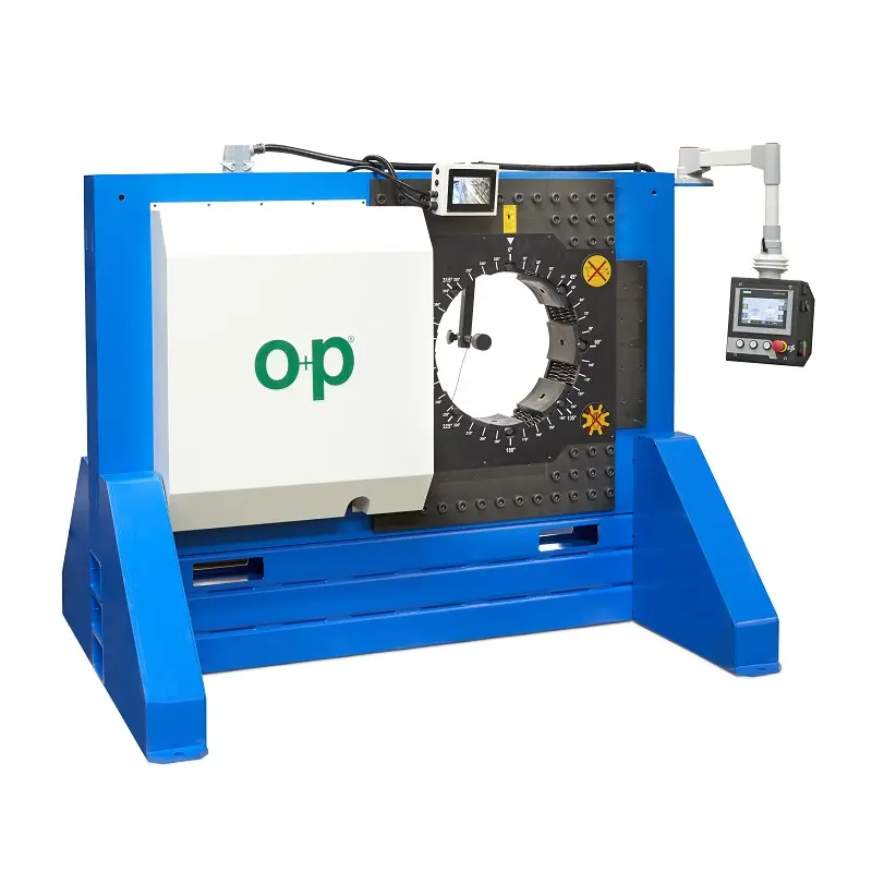 Our new high volume hose crimper Tubomatic V450 ES is able to crimp industrial hoses up to 16'' with big flanges and couplings. Its horizontal layout with a lowered working height was studied to create an ergonomic machine, practical and easy to use for the operators.